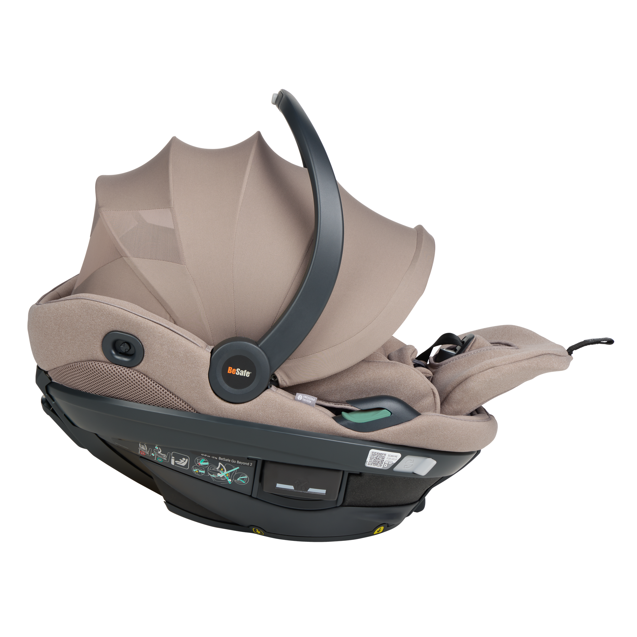 BeSafe Go Beyond² is the latest infant seat designed for safety, flexibility and comfort. Experience a unique safe sleep function that allows your baby to lie flat during car rides. With easy installation options - ISOfix or car belt - and innovative features like hands-free operations and a peekaboo sun canopy. The 5-point harness adds extra safety for real-life situations, complemented by the convenient rotation functionality for easy access to your baby. Certified for usage in airplane. This is an upgrade of the BeSafe Go Beyond , awarded with "Very Good" safety score in the ADAC autumn 2024 test. BeSafe GoBeyond + base is the only true lay-flat seat on the market with the highest possible safety score. Our unique Universal Level Technology™ ensures the same top-level safety performance across all vehicle types.
