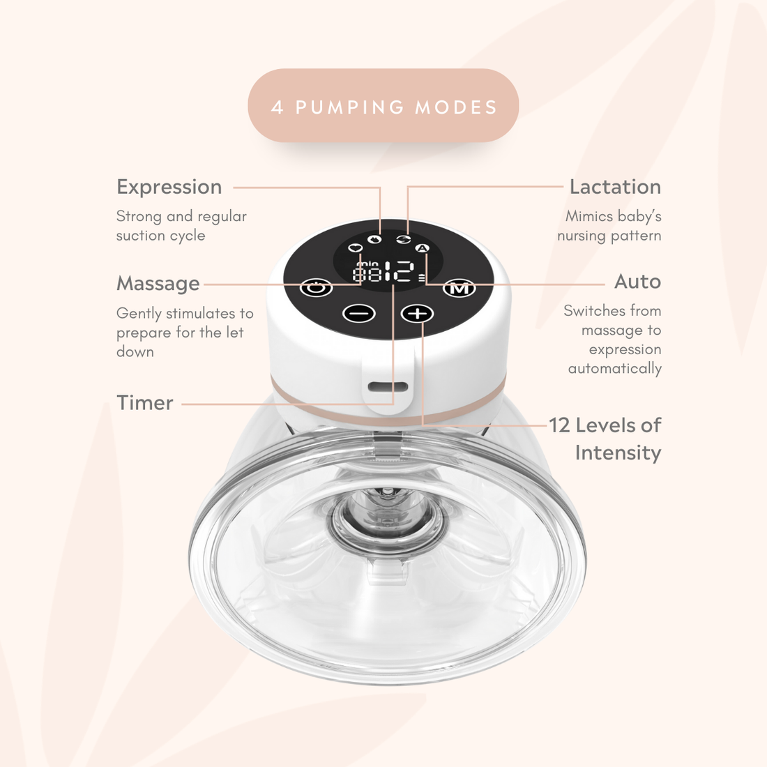 - 4 Pumping Modes: Massage/Expression/Lactation/Auto