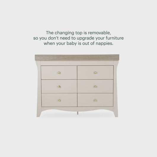 The CuddleCo Clara 6 Drawer Dresser Changer combines generous storage with a timeless design, helping everyday nursery routines feel calmer and more organised.