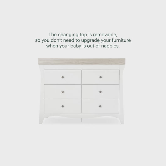 The Clara 6 Drawer Dresser Changer offers a practical, versatile storage solution for the nursery.