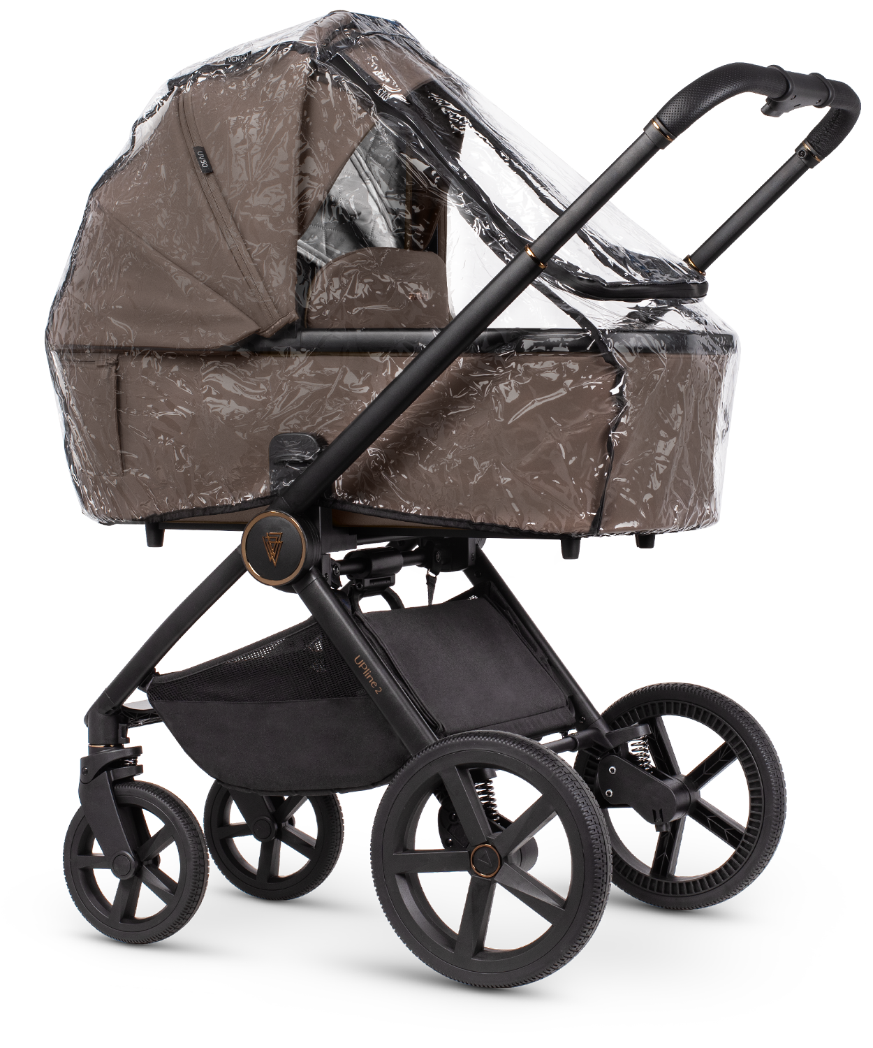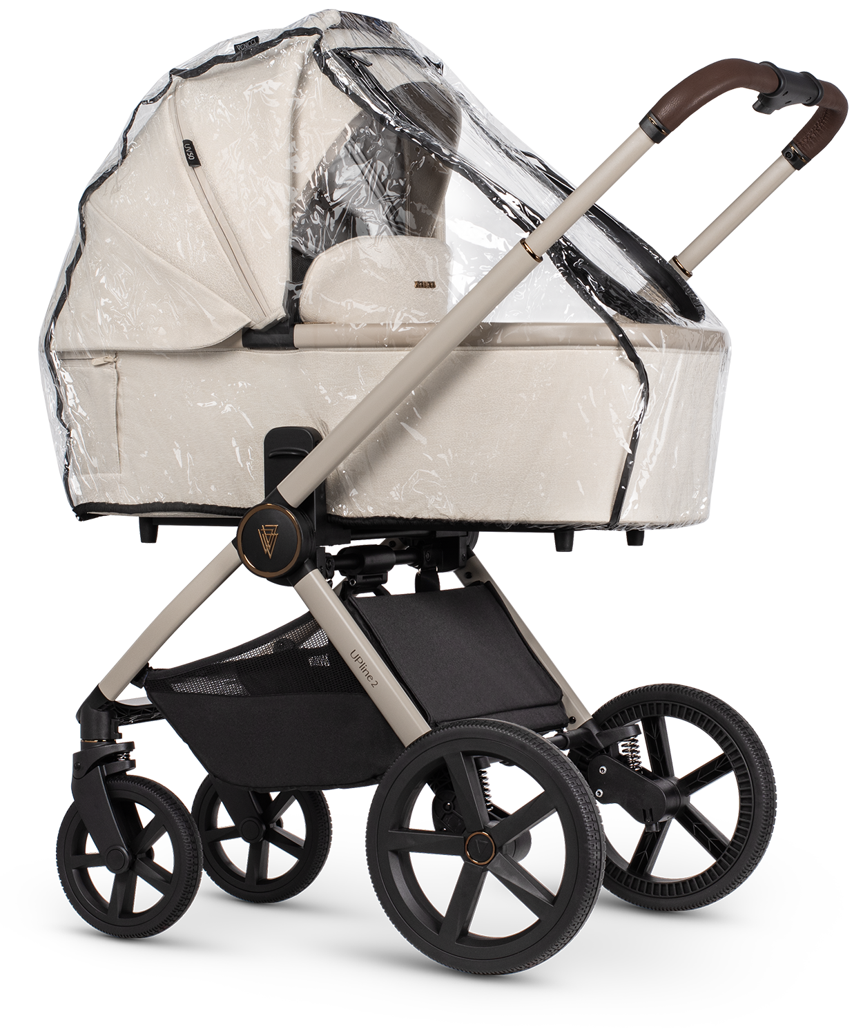 The Upline 2 rain cover offers reliable protection against unpredictable weather. The spacious cover completely shields the pram, keeping your little one safe from rain, snow, and wind. A practical front window opens easily with zippers, giving you full control over your child’s comfort. Additionally, special ventilation holes at the window level ensure proper air circulation, allowing your baby to breathe freely.