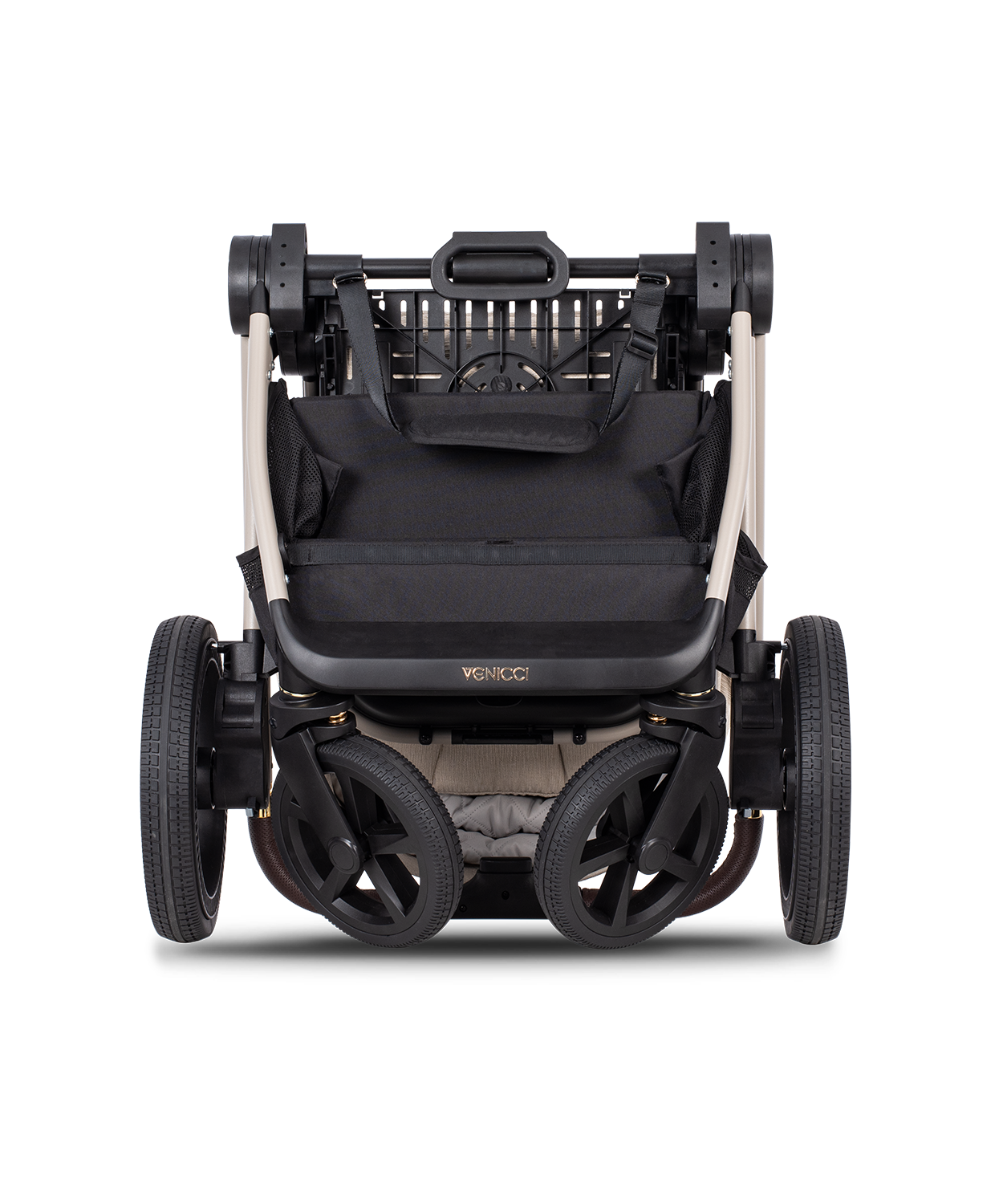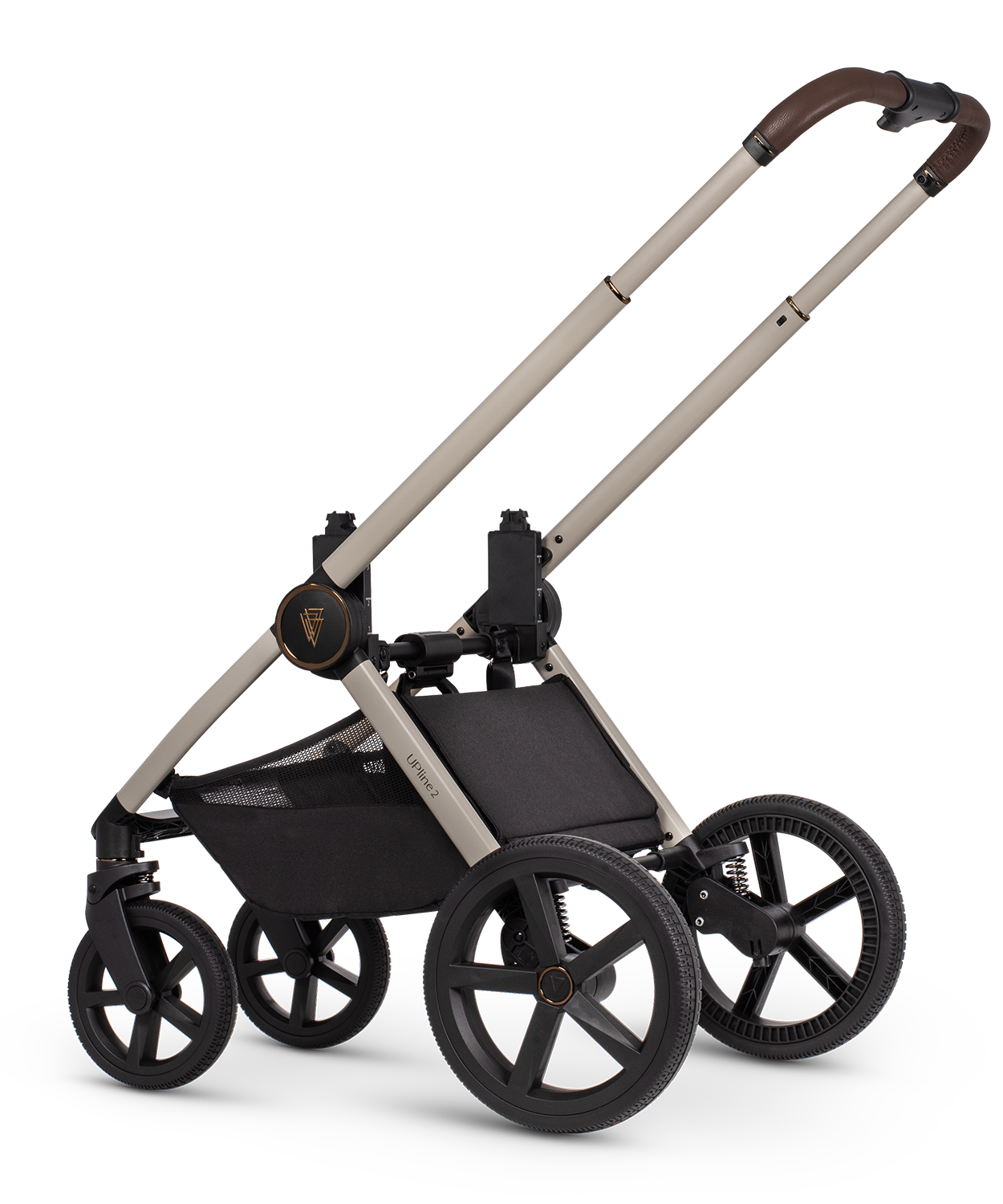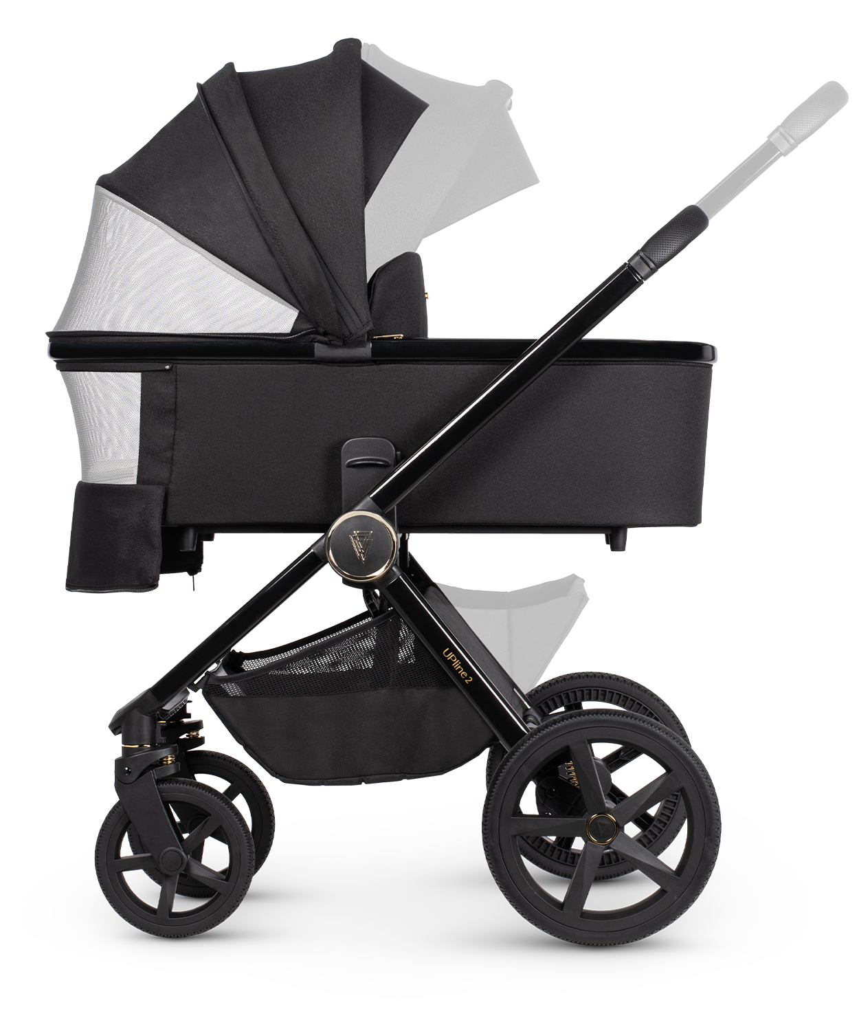 With the Venicci Upline 2, folding the pram becomes a pleasure. A quick motion of the hand is all it takes to fold the frame and get it ready for transport. Thanks to the special strap mounted on the chassis, you can conveniently carry the pram over your shoulder with ease. The chassis weighs only 5.9 kilograms and is made of lightweight yet durable aluminium, resistant to damage. You can easily fit it into the boot, even of the smallest car.